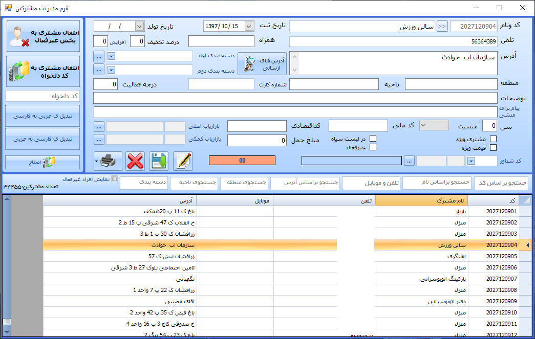 امکان جستجو اشتراک بر اساس موبایل نام و آدرس و تلفن
